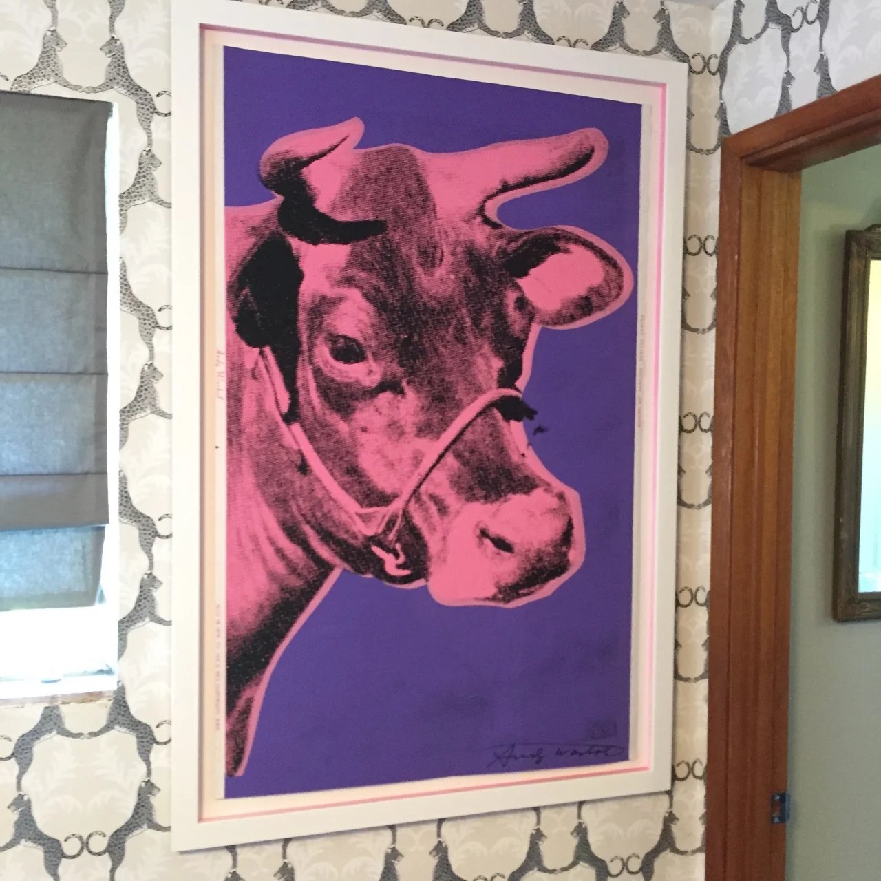 A few months back a client came in with an original Andy Warhol Cow that had been tightly rolled up for years. We recommended an art conservationist who could iron out the wrinkles and after that we could begin our task of framing.